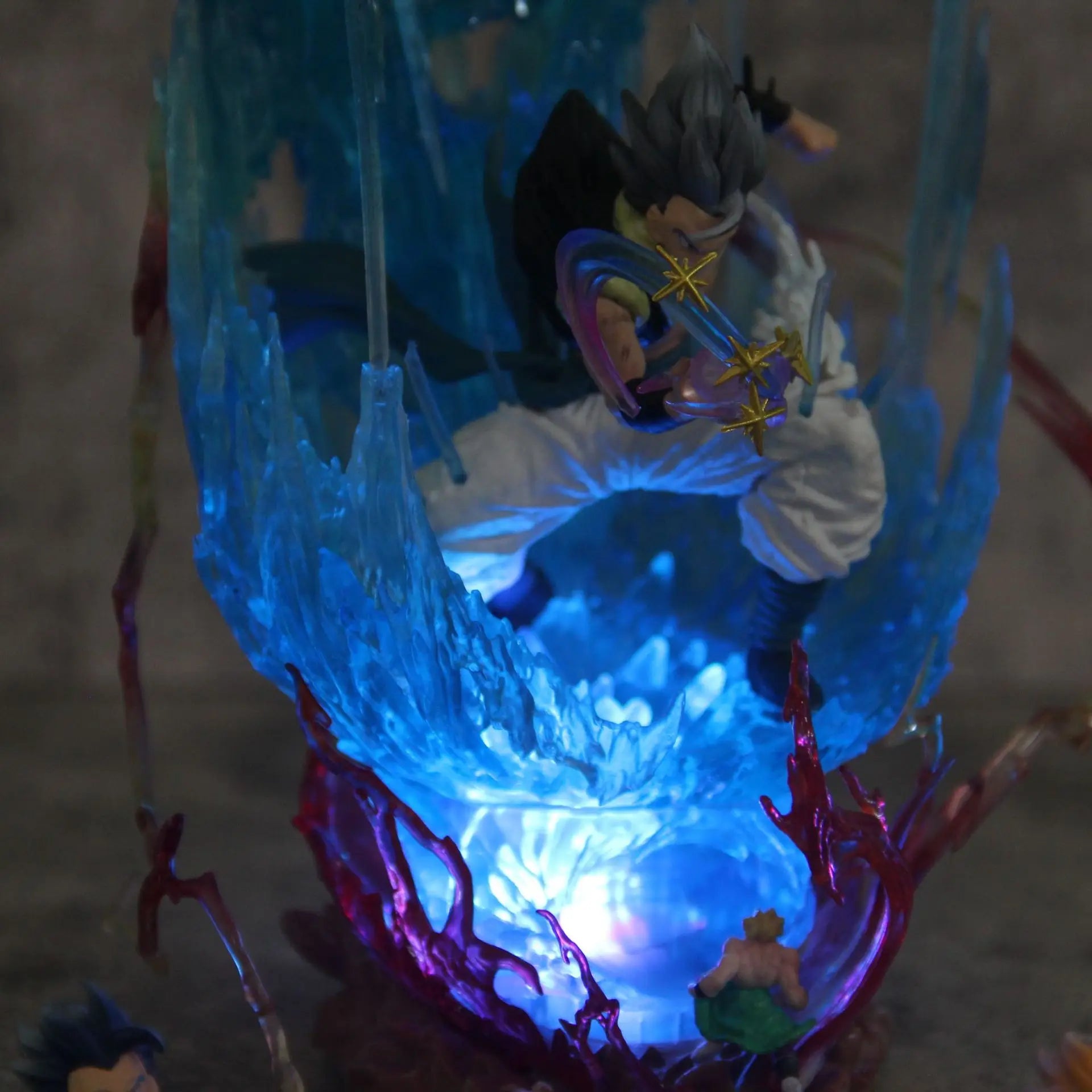 28CM Dragon Ball Animation Figure Ls Gogeta Kubei Fusion Super Saiyan Three-Headed Sculpture Luminous Model Statue Ornament Gift Dragon Ball Action Figure