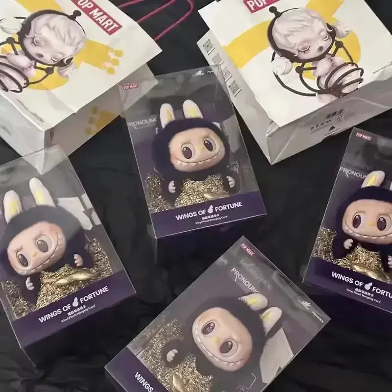 "Wings of Fantasy" Theme: This Labubu features delicate, possibly pronounceable wings, adding a touch of ethereal beauty and fantasy to the mischievous character. The wings might be made from a unique material, feature intricate detailing, or have a special color or texture. This is a unique and imaginative take on the classic Labubu design.