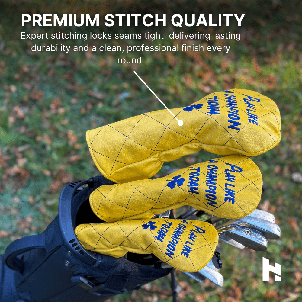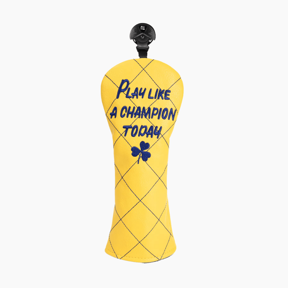 The Champion’s Play Headcover brings motivation to every round with its bright golden finish, clover detail, and the iconic “Play Like A Champion Today” script. Designed for golfers who thrive under pressure, it protects your gear while fueling your game with winning energy.