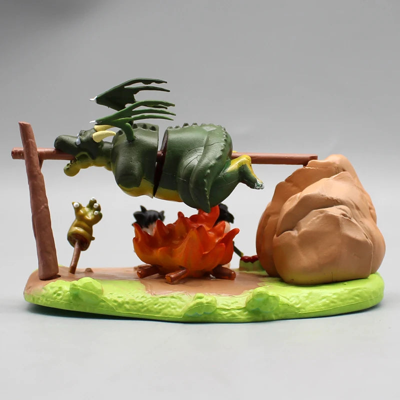 8cm Anime Dragon Ball Z Goku Yajirobe Roasted Dragon PVC Statue Action Figures Collectible Model Toys Gifts