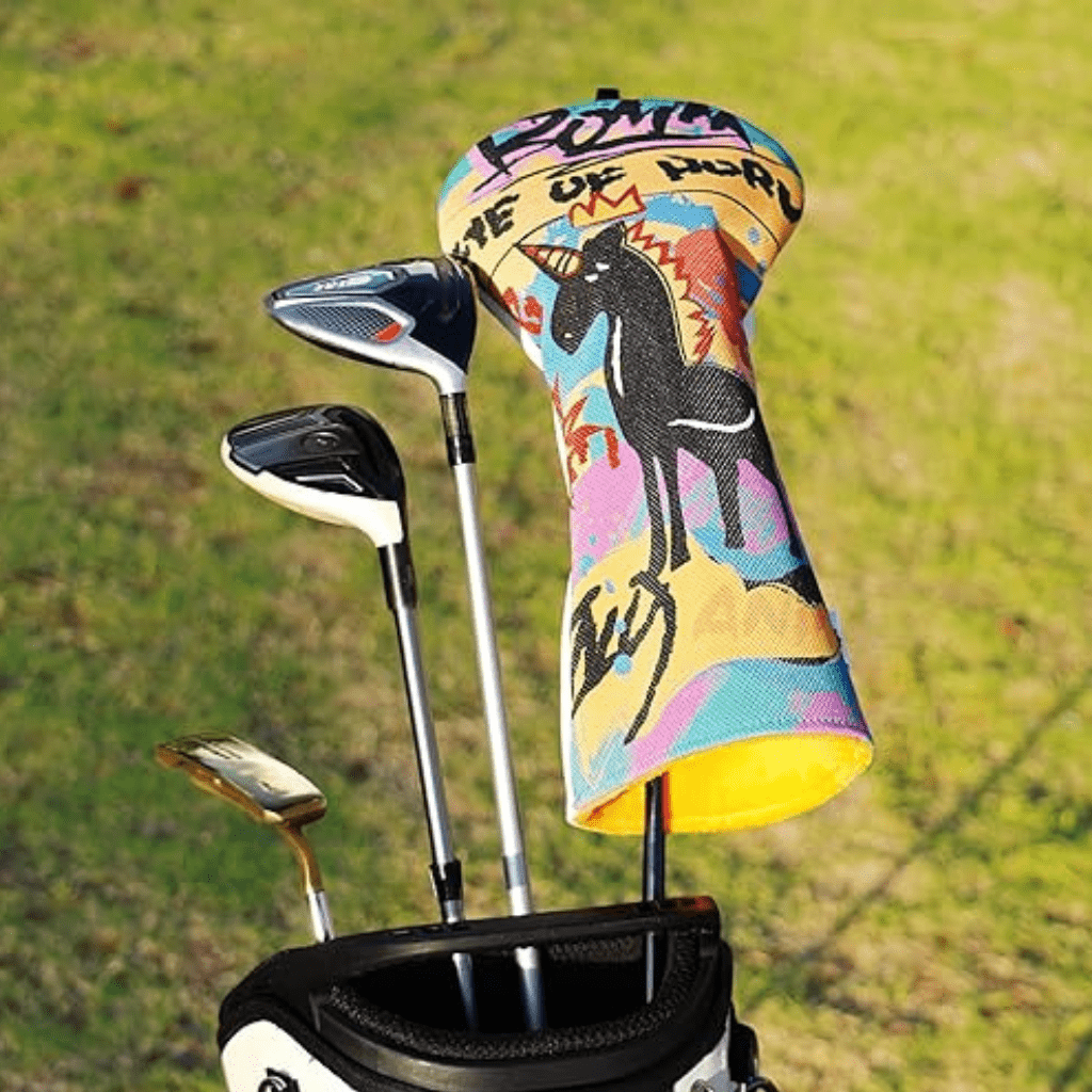 The Graffiti Unicorn Driver Headcover brings wild street-art energy to your bag with its bold neon colors, rough brush strokes, and striking black unicorn graphic. Designed to stand out from the tee box to the green, it delivers a perfect mix of attitude, color, and protection. Premium embroidery, durable materials, and a secure performance fit keep your driver safe while adding a burst of urban style to every round.