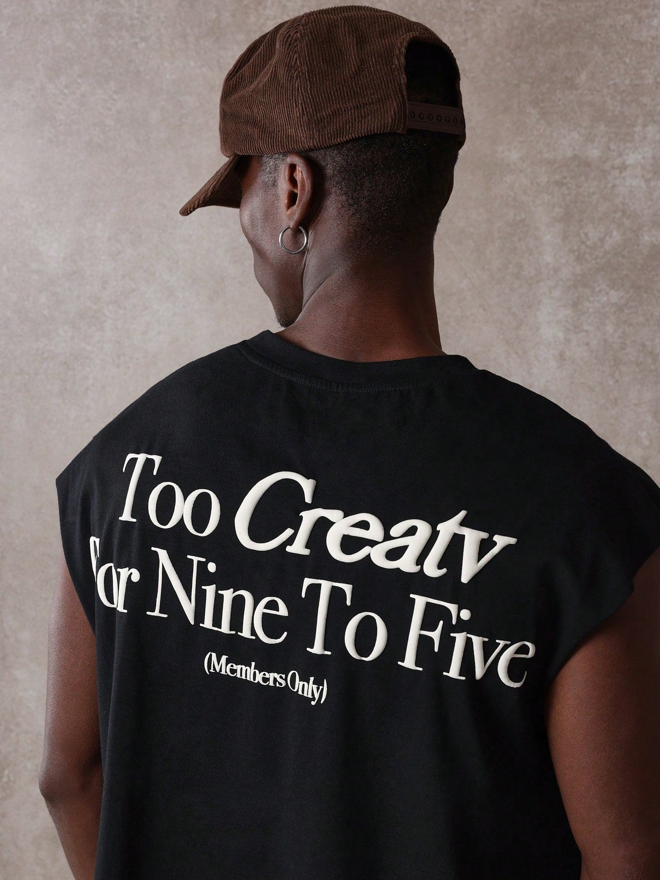 For the ones who build outside the system. The Too Creative Tank says what you're thinking — loud and unapologetic. With its cropped boxy silhouette, dropped armholes, and bold back graphic, this piece is made for the creators, the rebels, the ones who don’t clock in.
