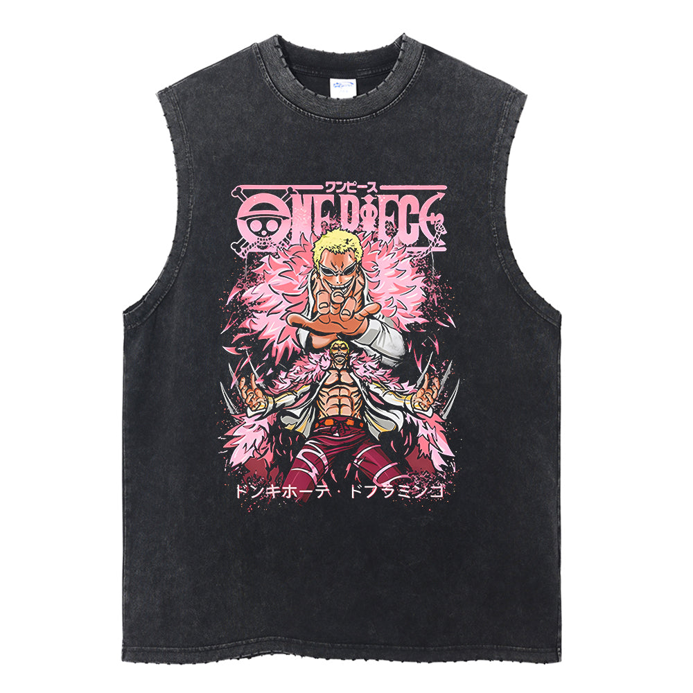 Each tank is vintage washed for that faded, worn-in feel — like a thrifted gem from the backstreets of Shibuya. The fabric feels broken-in but built to last, with a nostalgic edge that stands out from mainstream anime merch.