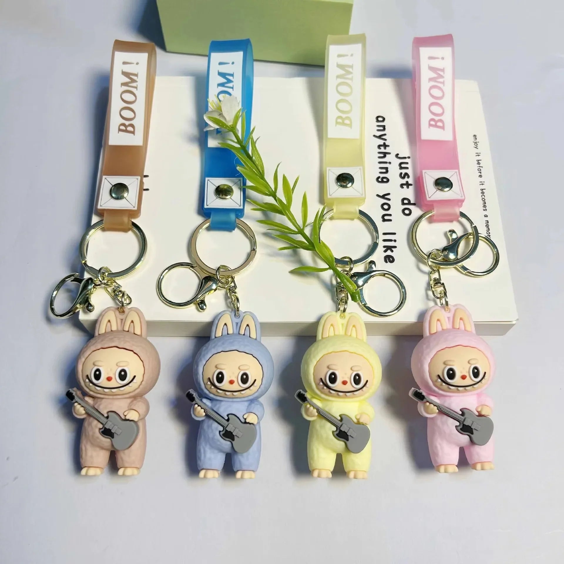 Ever wished you could carry a miniature beacon of musical charm, undeniable coolness, and playful fun wherever your adventures take you? Bear Hugs is absolutely thrilled to present our "Rockin' Renegade" Axe Man 3D Keychain! This isn't just any keychain; it's a wonderfully cute and utterly captivating 3D pendant, featuring the beloved Laboobu character rocking out with a guitar in hand and a "BOOM" text on its silicon strap! Available in 4 vibrant colors, this "Axe Man" keychain is a must-have for music lovers, fans of unique toys, and anyone who wants to add a touch of rock-and-roll flair to their everyday carry!